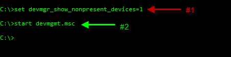 Starting the Device Manager from this command prompt is essential, as the command to show the missing devices only does it for that instance – if you leave this command prompt to open Device Manager it won’t show them!