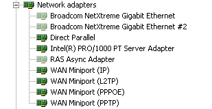 Voila! Along with some other hidden devices, we find the network adapters that were uninstalled.