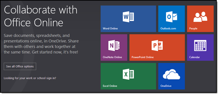 This nicely rounds out Microsoft’s free cloud offering with Outlook.com for email, OneDrive for storage, and the rest of the Office Apps available and usable in your browser of choice. Office 365 still remains the name for the paid subscription, but the web apps have become remarkably full featured and easy to use.