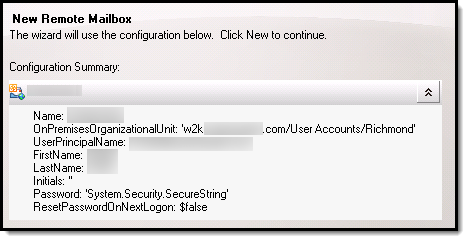 Creating a New User (Remote Mailbox)