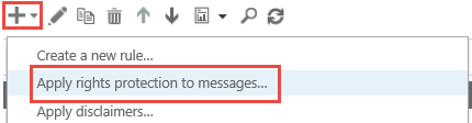 Start by going to the Exchange Admin Center, and click on Mail Flow, then Rules. Click the + icon to start creating a new rule, and select Apply rights protection to messages…