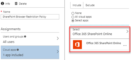 - Under Cloud apps, select Office 365 SharePoint Online;