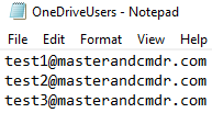 Start off by creating a simple CSV/TXT file with the User Principal Names of the users you want to create OneDrive libraries for – this cmdlet will handle up to 200 at a time, so be sure to split them out if you need to create bigger batches than that: